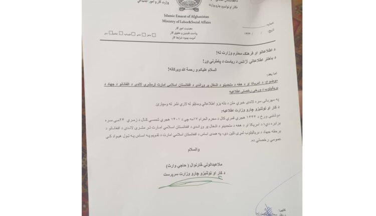 در این نامه آمده است، فردا اولین سالروز پیروزی جهاد افغانها به رهبری امارت اسلامی در برابر آمریکا و همکاران این کشور در افغانستان است و به همین اساس رخصتی عمومی خواهد بود.