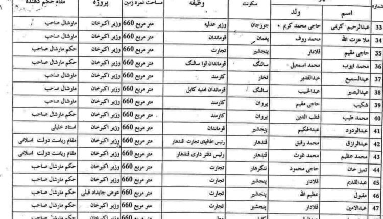 به تازگی، تصاویری از فهرست دریافتکنندگان زمینهای دولتی در مناطق اعیاننشین و گرانقیمت کابل منتشر شده است.