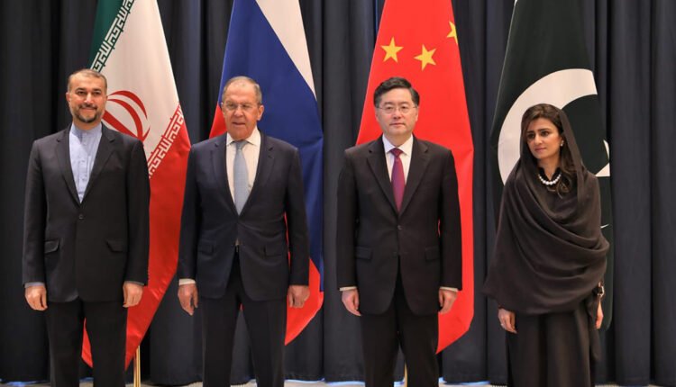 براساس تصاویر منتشر شده از این نشست غیررسمی که پیش از برگزاری نشست رسمی سمرقند برگزار شده، حنا ربانی، وزیر امور خارجه پاکستان در کنار وزرای خارجه ایران، روسیه و چین دیده میشود.