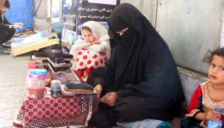 سکینه خانم کهن سالیست که در گوشه از بازار هرات کفاشی می کند، وی می گوید که به دلیل مشکلات اقتصادی و نداشتن نان آور مجبور شده تا از این طریق مواد غذایی فامیل اش را تامین نماید.